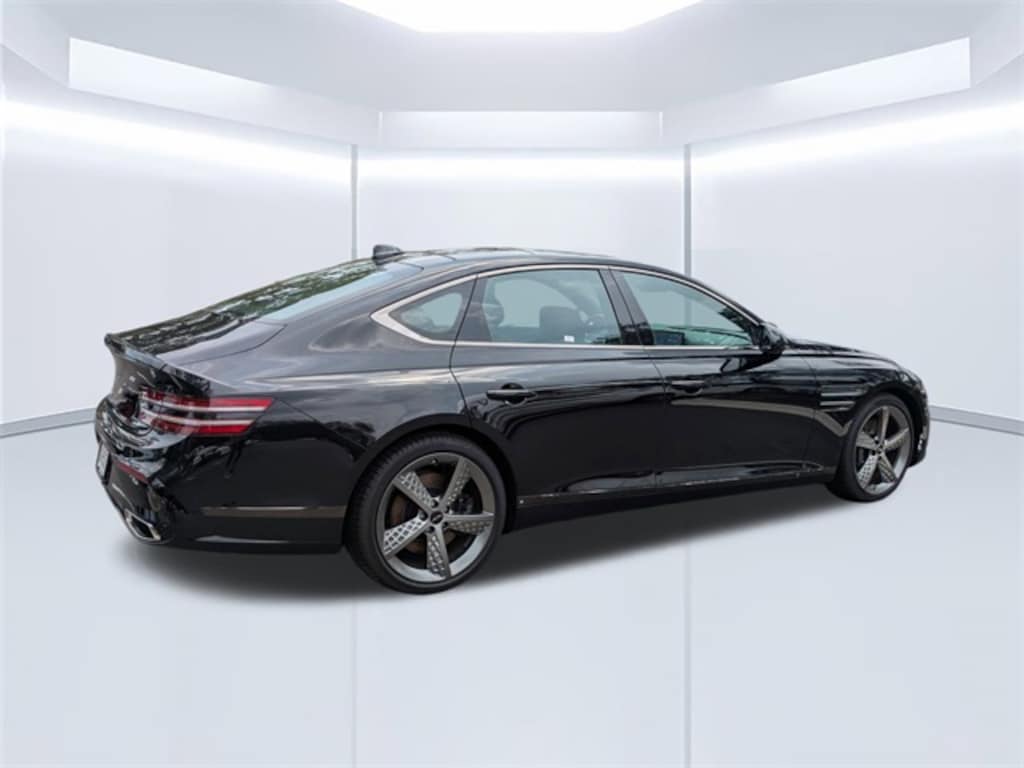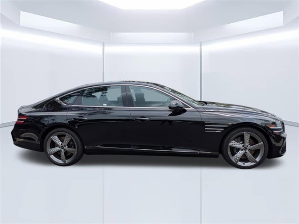 Certified. Vik Black 2025 Genesis G80 2.5T Sport Prestige AWD AWD 8-Speed Automatic I4 HEATED SEATS, VENTILATED SEAT, LEATHER SEATING, BLUETOOTH, BACK-UP CAMERA, POWER DRIVER SEAT, ADAPTIVE CRUISE CONTROL, 18 Speakers, 4-Wheel Disc Brakes, ABS brakes, Adaptive suspension, Alloy wheels, Android Auto & Apple CarPlay, Anti-whiplash front head restraints, Automatic temperature control, Dual front impact airbags, Dual front side impact airbags, Electronic Stability Control, Emergency communication system: Genesis Connected Services, Four wheel independent suspension, Front anti-roll bar, Front Bucket Seats, Front dual zone A/C, Heated front seats, Heated rear seats, Knee airbag, Leather Seating Surfaces, Low tire pressure warning, Memory seat, Navigation System, Occupant sensing airbag, Overhead airbag, Power driver seat, Power moonroof, Power passenger seat, Rear anti-roll bar, Rear side impact airbag, Remote keyless entry, Speed-sensing steering, Steering wheel mounted audio controls, Traction control.